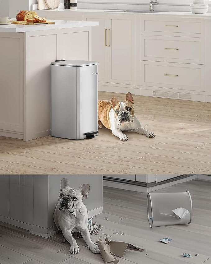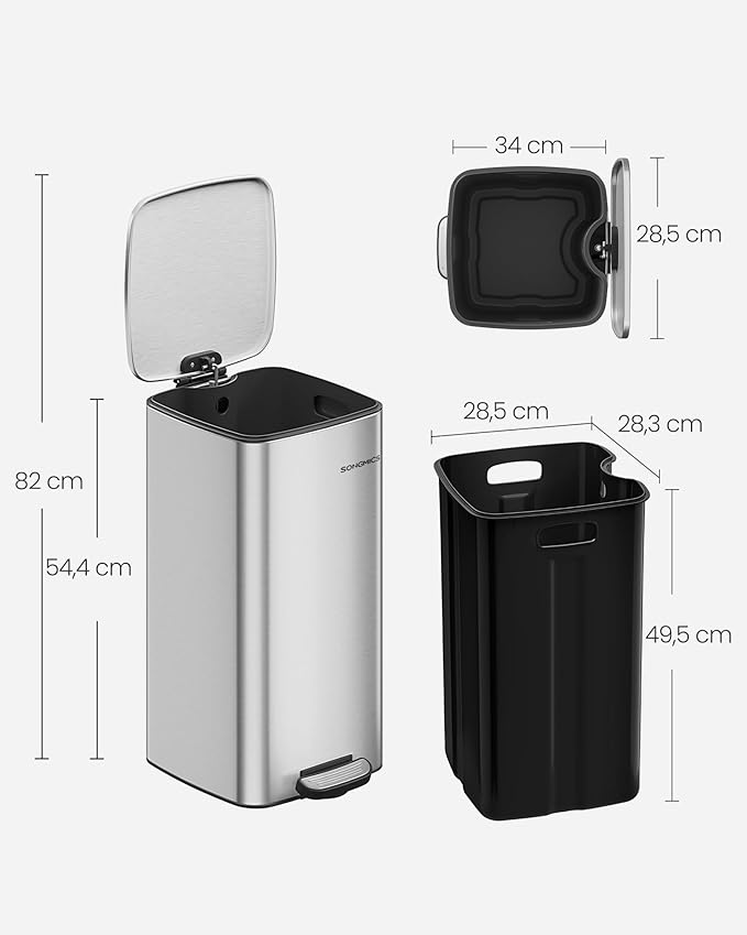 SONGMICS kanta za smeće od 30 litara s čeličnim pedalom, sporim zatvaranjem i mogućnošću zadržavanja otvorenog, metalik srebrna 【Učinkovita i kompaktna】 Ova kuhinjska kanta za smeće zahvaljujući s… Pročitaj više