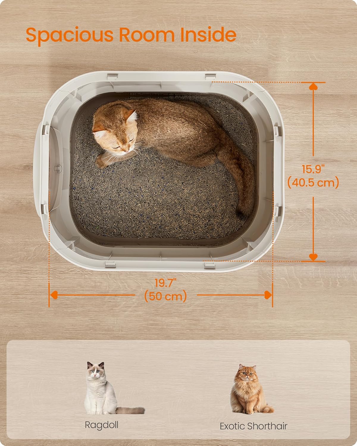- 【PROSTRANA UNUTRAŠNJOST】 Unutarnje dimenzije velike kutije za pijesak iznose 50 × 40,5 × 34,5 cm, što vašim mačkama pruža dovoljno prostora za udobno korištenje.