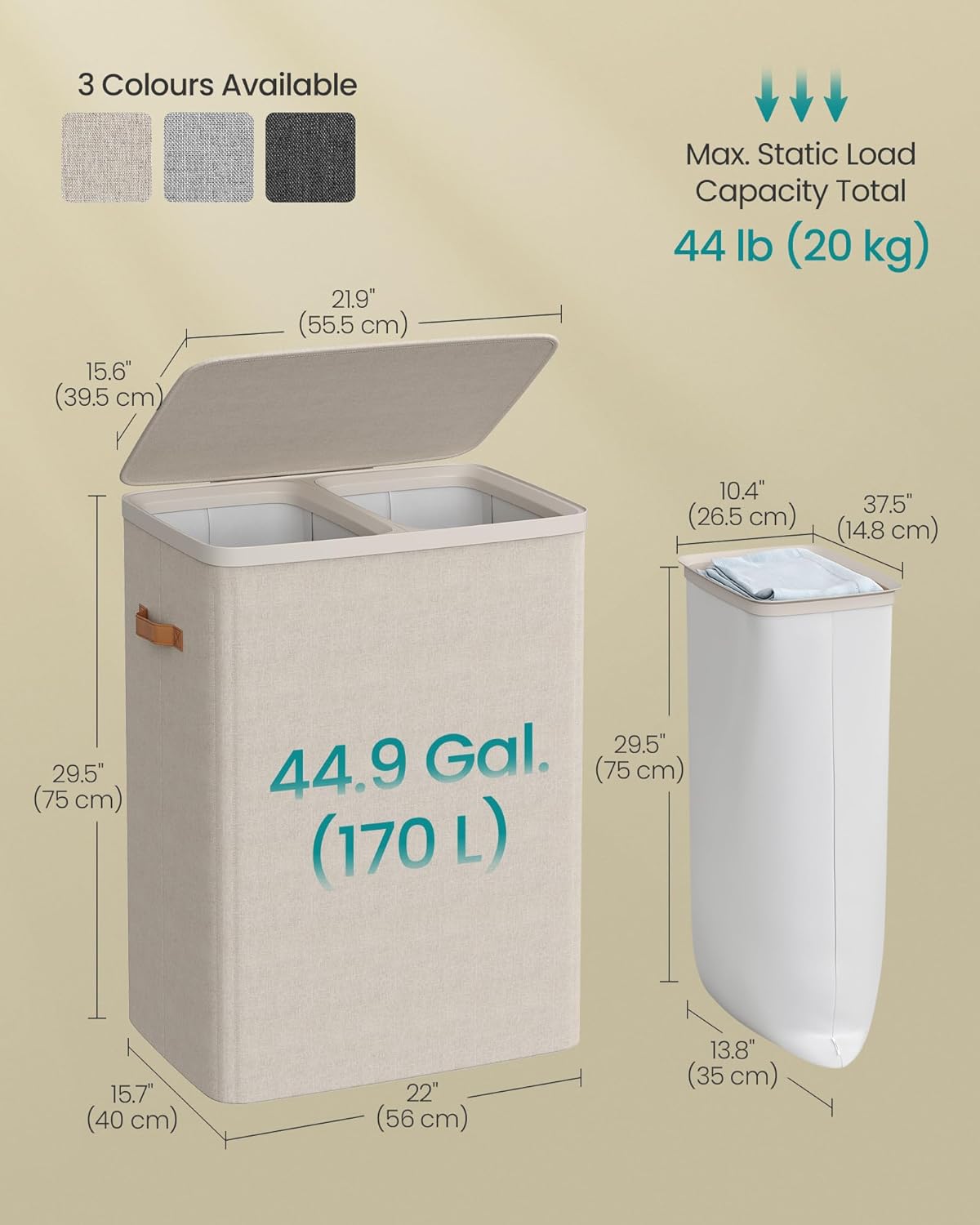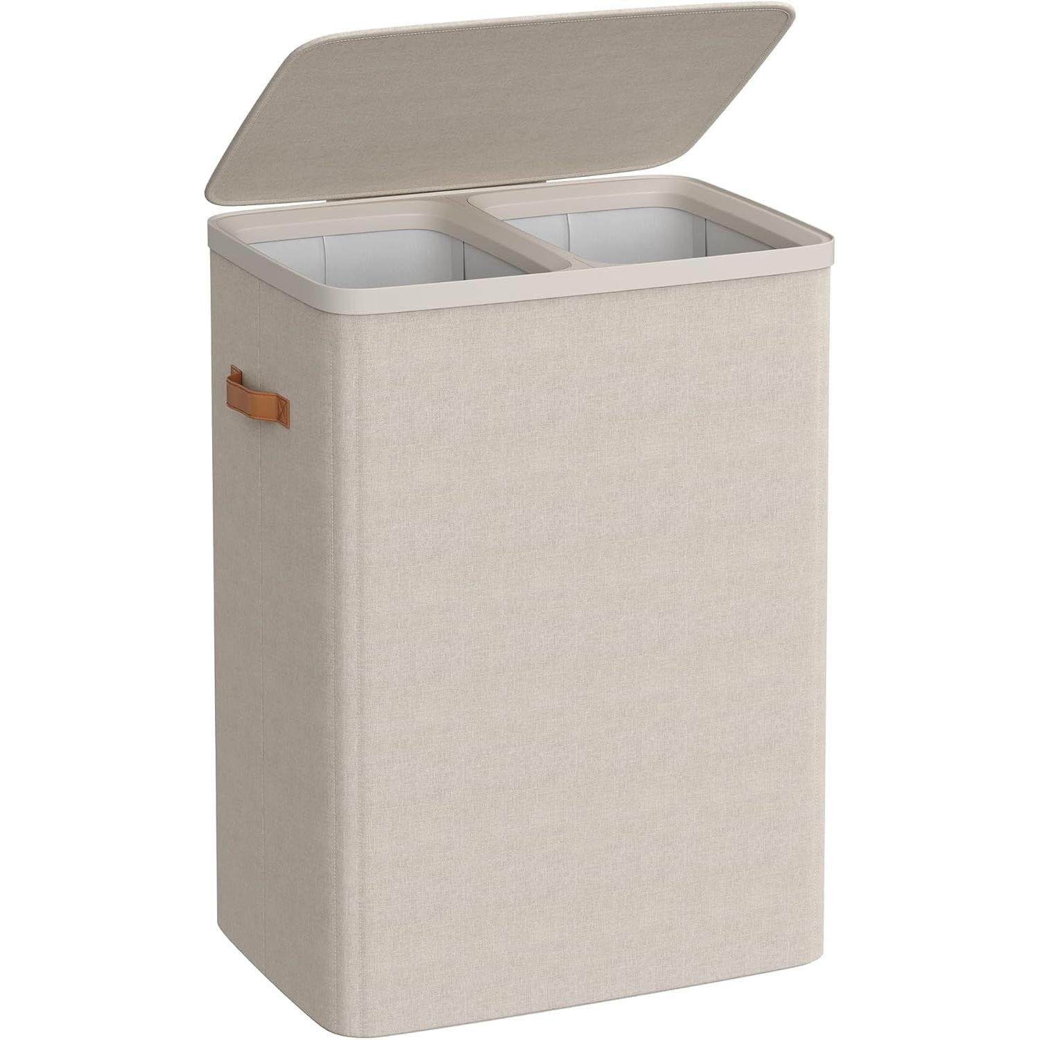 SONGMICS košara za rublje, 170 L dvodijelna košara za rublje s poklopcem i ručkama, s uklonjivim unutarnjim vrećicama, jednostavna za sastavljanje, 56 x 40 x 75 cm, cappuccino bež