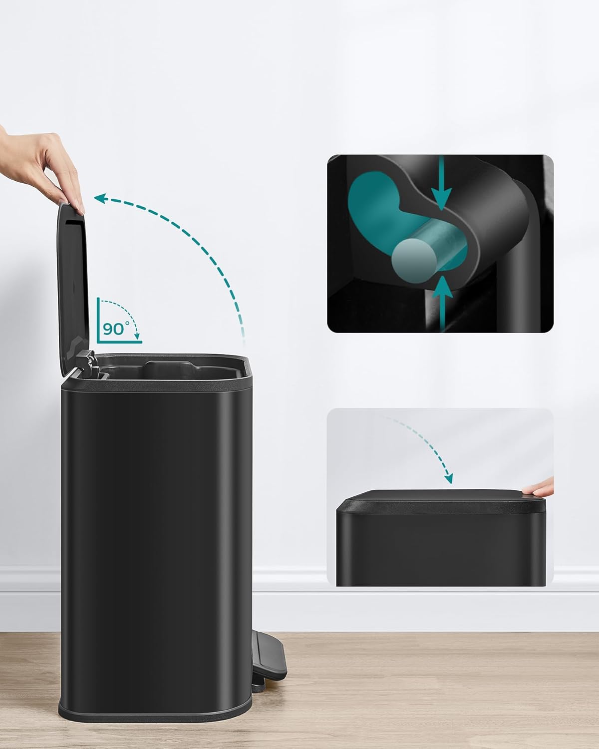 - Jednostavno premještanje i udoban pedal: S ručkom na stražnjoj strani, otpadnik se lako može premjestiti. Velika površina pedala s protukliznom oblogom osigurava udobnu upotrebu.
