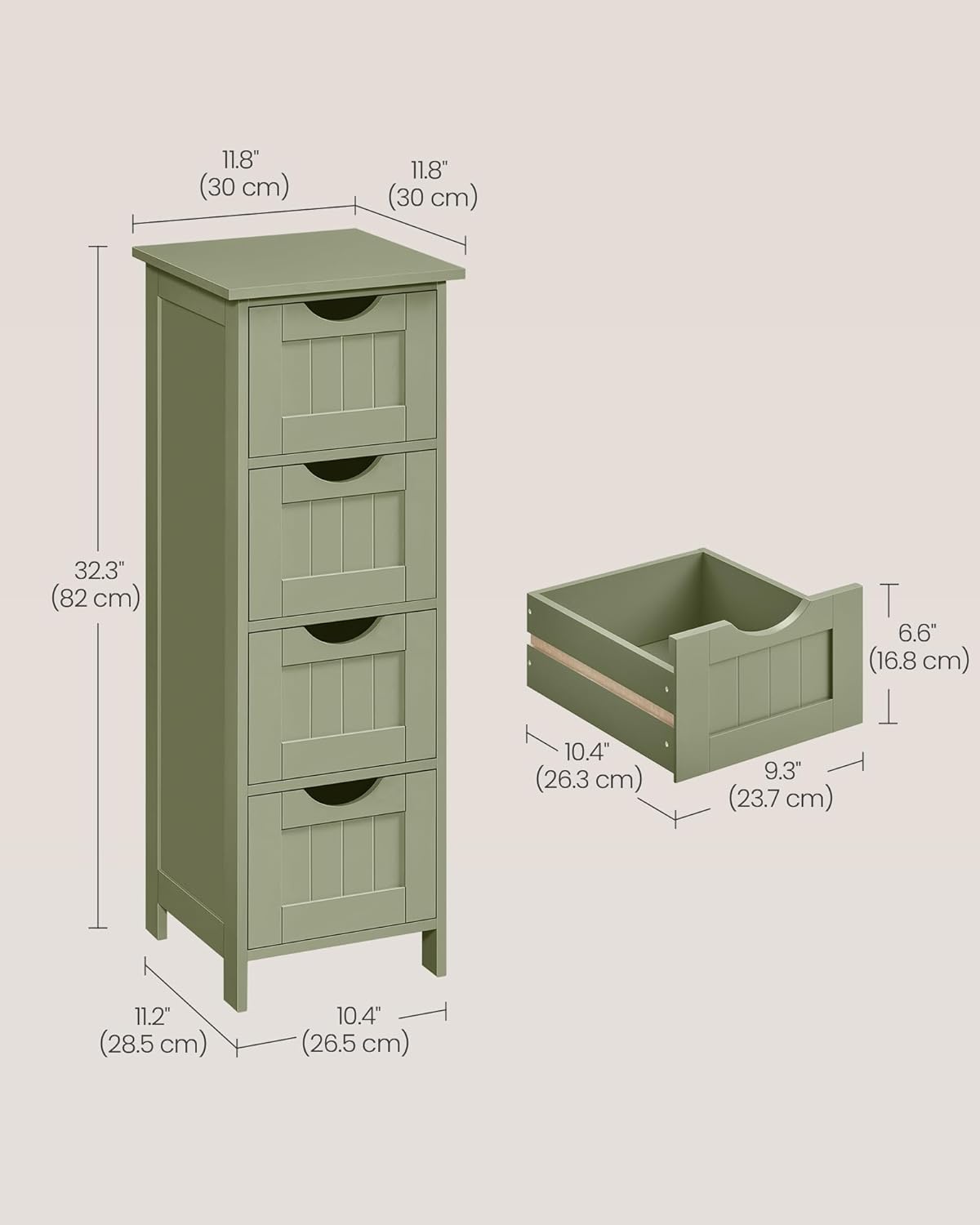 - [Prostran, ali štedljiv] Ovaj kupaonski ormarić dimenzija 30 x 30 x 82 cm s 4 ladice zauzima malo prostora, a nudi obilje prostora za pohranu vaših kupaonskih potrepština, poput toaletnog papira i parfema