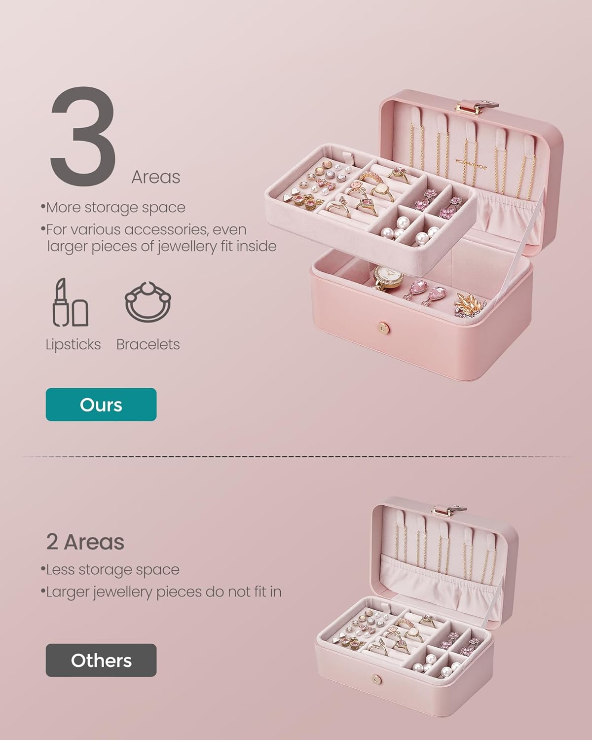 SONGMICS Kutija za nakit, 2-slojni organizator za nakit, 11 x 16 x 8 cm Putna kutija za nakit, Prijenosni organizator za nakit, Mala, Prostrana, za veće dodatke, Ideja za poklon, ružičasta [Kompak… Pročitaj više