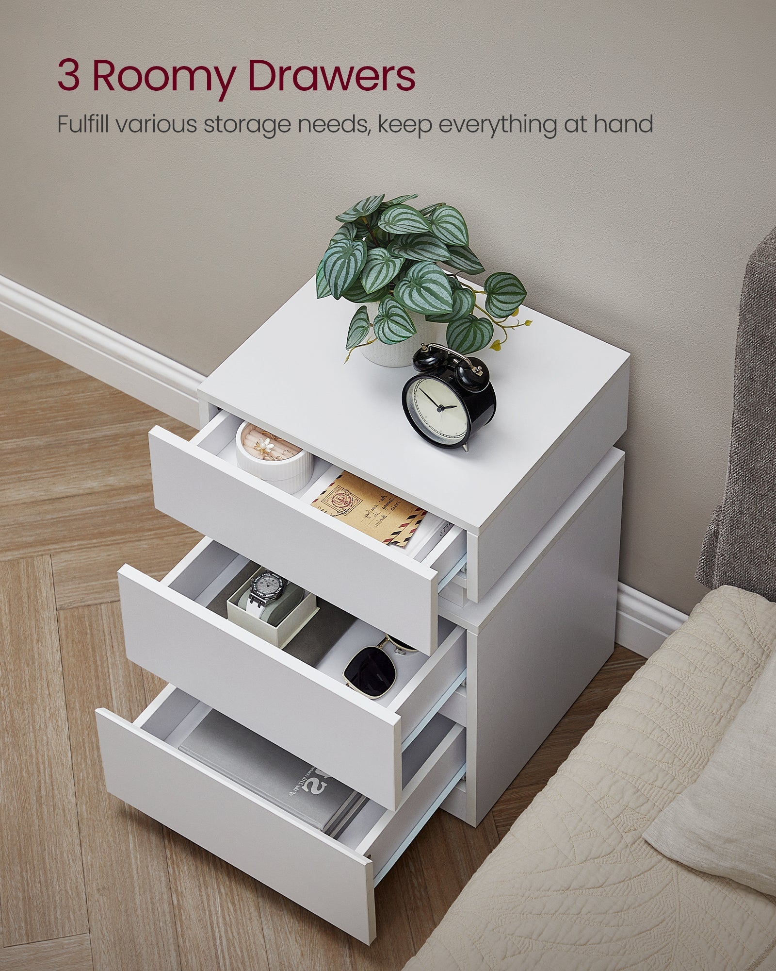 VASAGLE Kailyn kolekcija – set noćnih ormarića od 2 komada, s LED osvjetljenjem, 3 ladice, modernog dizajna, za spavaću sobu i dnevni boravak, 35 × 40 × 55, oblačno bijela