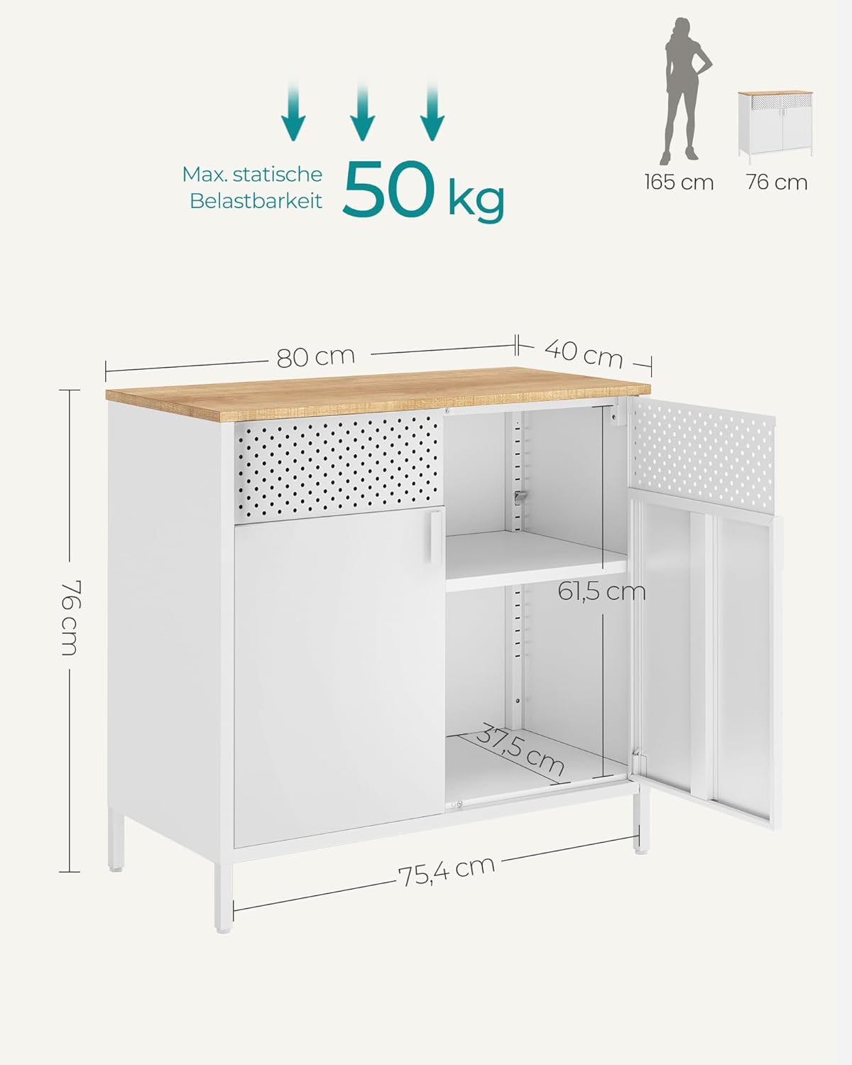 SONGMICS ormarić, metalni ormar, s dvostrukim vratima, magnetskim zatvaranjem, s podesivim policama, čeličnom konstrukcijom, 40 x 80 x 76 cm, prirodna bež–bijela