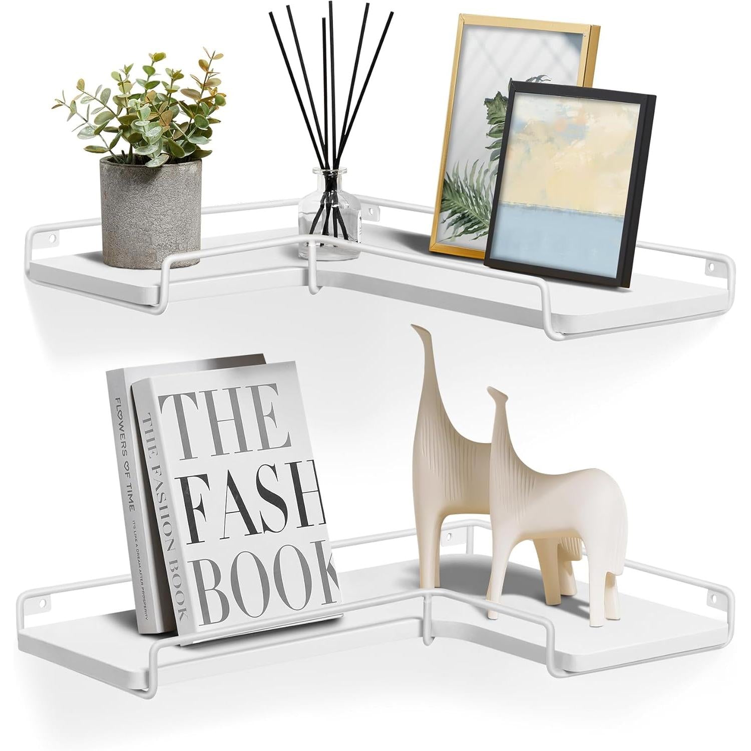 Plutajuće police, set od 2 komada, L-oblikovana kutna zidna polica, bijela