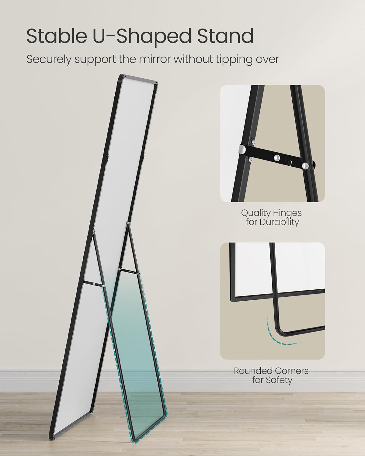 SONGMICS stalni ogledalo, 165 x 60 cm, pravokutnog oblika, cijelo tijelo ogledalo s postoljem, okvir od aluminijske legure, kaljeno staklo, za spavaću sobu, dnevni boravak, garderobu, tintno crno