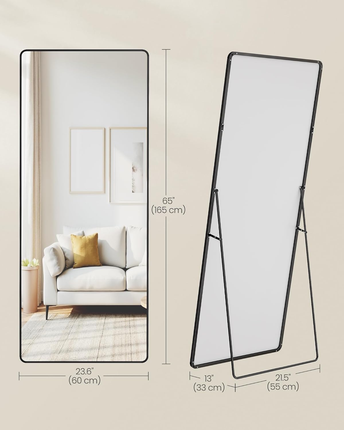 SONGMICS stalni ogledalo, 165 x 60 cm, pravokutnog oblika, cijelo tijelo ogledalo s postoljem, okvir od aluminijske legure, kaljeno staklo, za spavaću sobu, dnevni boravak, garderobu, tintno crno 【C… Pročitaj više