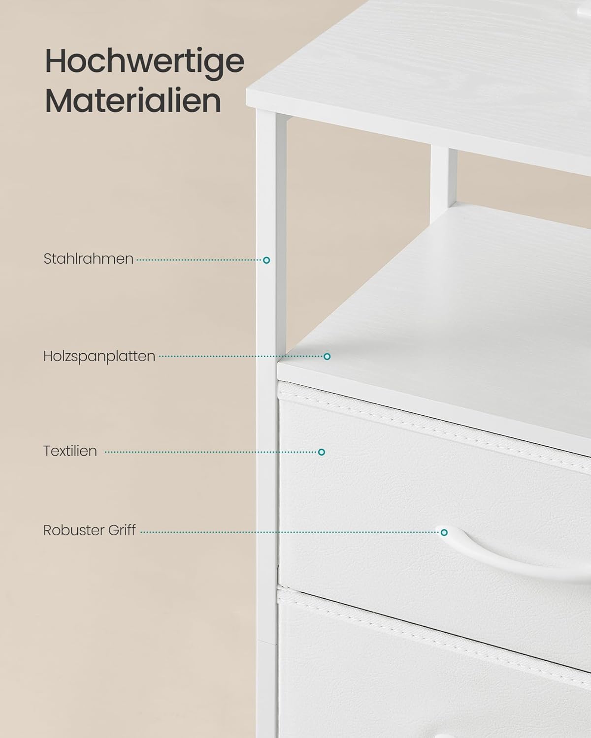 - STABILNO I SIGURNO: Izrađeno od čelika i materijala na bazi drva; svaka polica noćnog ormarića može podnijeti do 30 kg, a ladice pojedinačno do 5 kg. Uključeni osiguravač protiv prevrtanja pruža dodatnu sigurnost