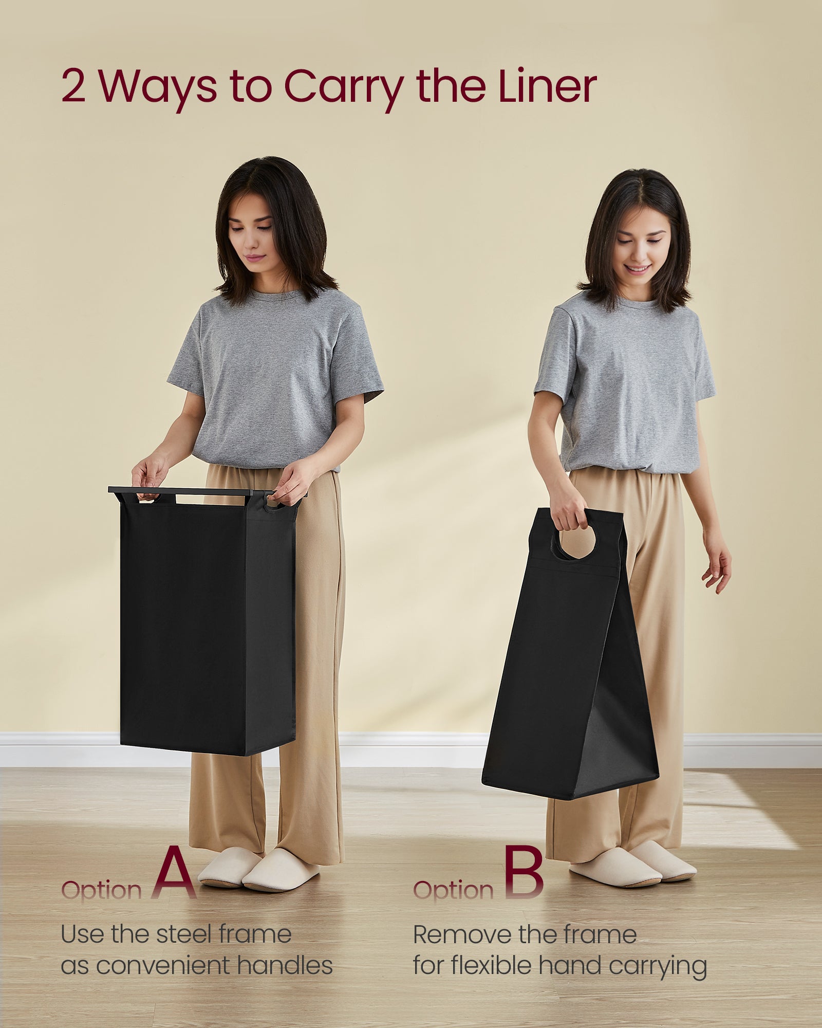 - [Izvlačive i uklonjive vrećice] Svaka vrećica ima plastičnu potporu na dnu kako bi se spriječilo opuštanje. Zahvaljujući čičak traci, vrećice se lako izvlače i uklanjaju, tako da ih možete jednostavno ponijeti do perilice rublja.