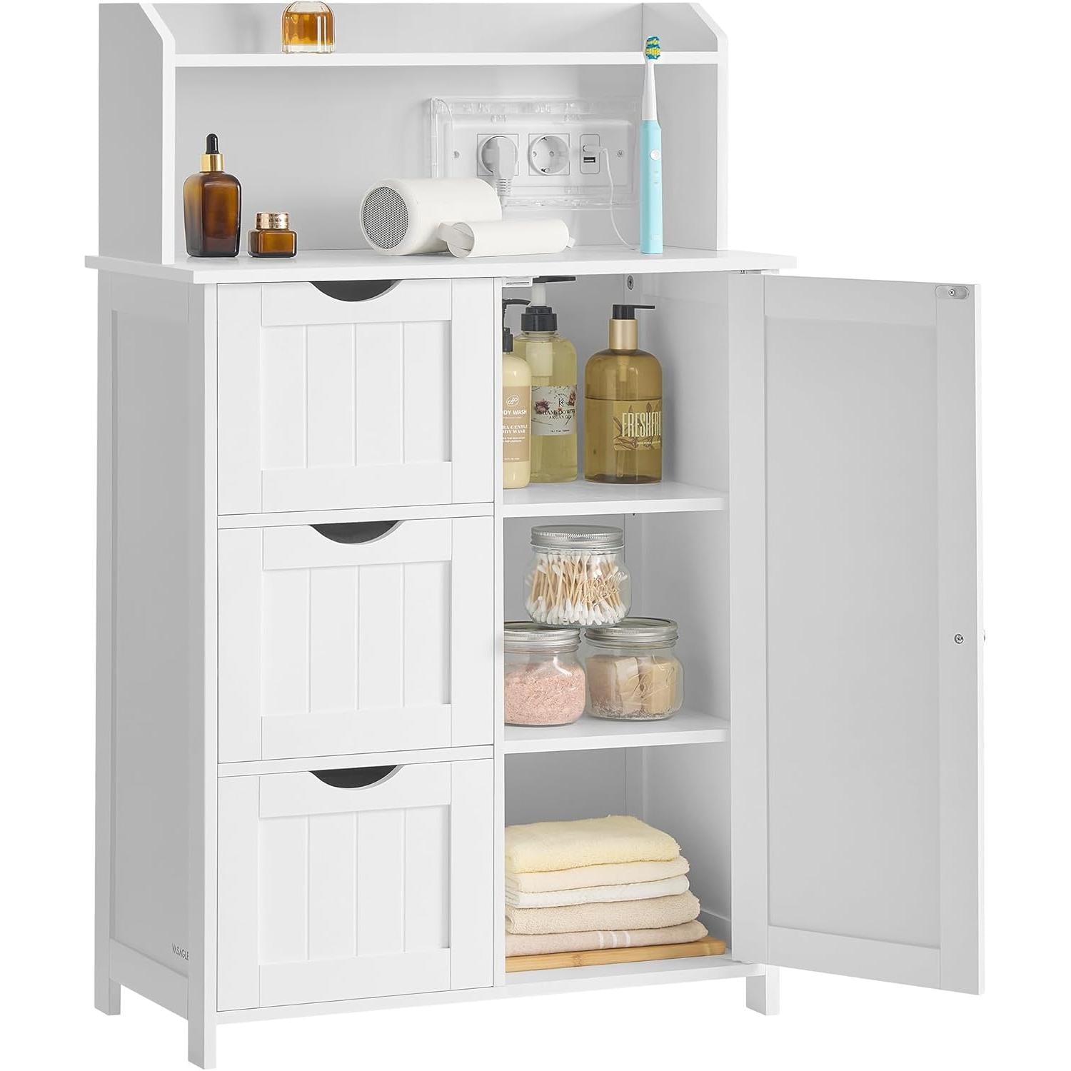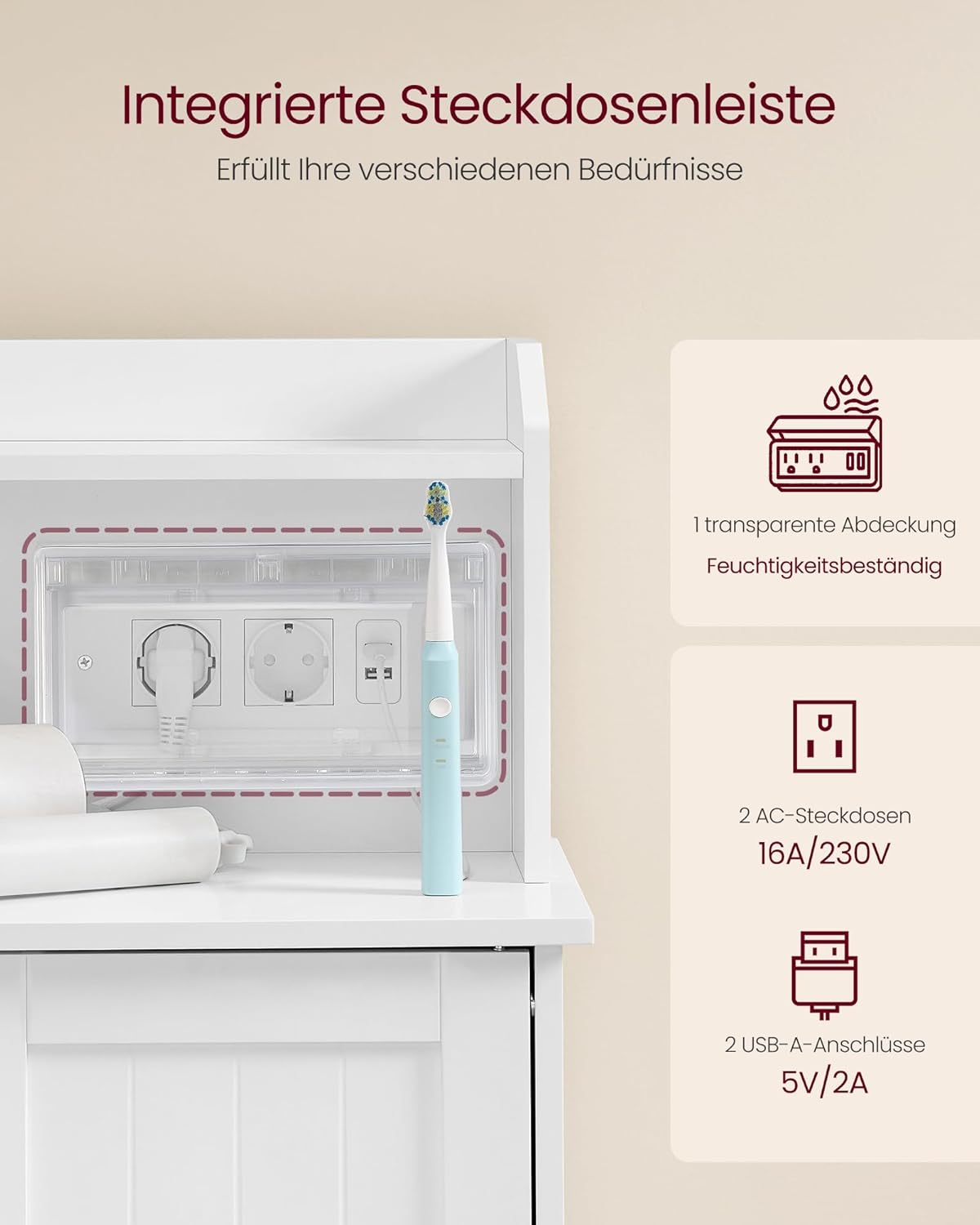 VASAGLE kupaonski ormar, samostojeći, s vratima, utičnicom, ladicama, spremnikom za toaletni papir, toaletni ormar, s podesivim policama, 30 x 60 x 100 cm, bijela boja Praktična punionica: 2 AC u… Pročitaj više