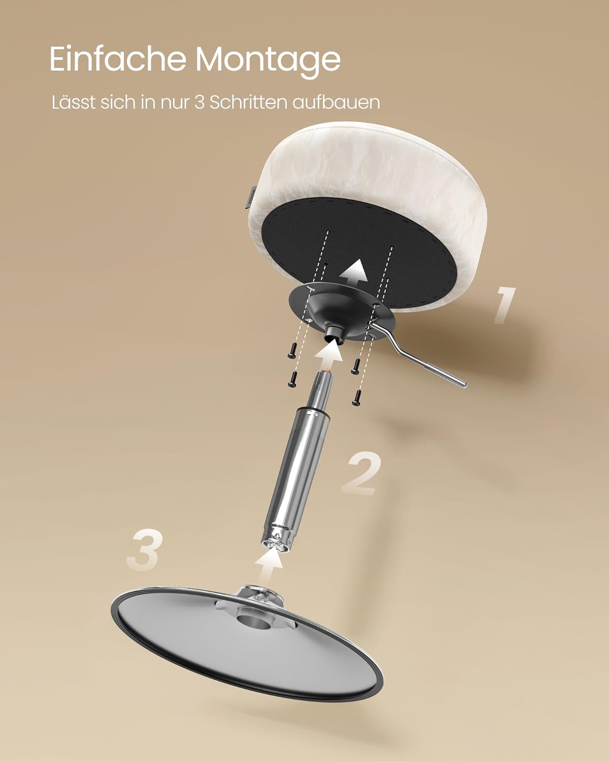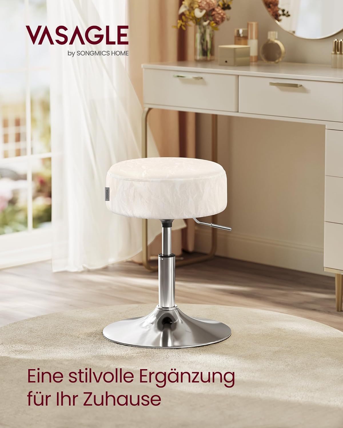 VASAGLE stolica za šminkanje, barska stolica, podesiva visina, okretna za 360°, krem-bijela